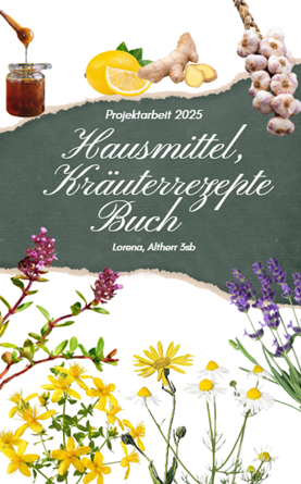 Ich wollte unbedingt etwas machen, das mit Gesundheit zu tun hat. Deshalb habe ich mich für ein Buch entschieden, welchem ich neun verschiedene Kräuter und Hausmittel ihre Anwendungsgebiete und was sie bewirken, so einfach wie möglich, in einem Buch zusammenfasse. Zu jedem Hausmittel oder Kraut ein bis drei Rezepte. Ich habe mich für Rezepte entschieden, die ich schon öfters verwendet habe und auch solche, die ich durch meine Grossmutter lernen konnte. Es war mir wichtig, dass mein Layout meines Buches einen regelmässigen Aufbau hat und auch übersichtlich ist