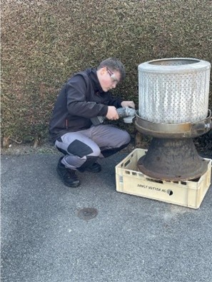 Ich habe aus einer alten Waschmaschinentrommel einen Grill gemacht. Für den Grill habe ich eines der drei Beine länger gemacht als die anderen. So entstand ein Grillrost, den man in der Höhe verstellen kann. Der Rost bietet genug Platz für viele Lebensmittel. Jetzt habe ich einen robusten Grill, der gut aussieht. Der Umbau war einfach – er gibt der Trommel eine neue Funktion. Es ist auch eine nachhaltige Art, alten Materialien eine neue Aufgabe zu geben. Der Grill ist ideal für den Garten oder zum Campen.